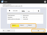 Na stroji můžete vyvolat předchozí používaná nastavení kopírování. Položky vyvolaného nastavení lze před kopírováním změnit.