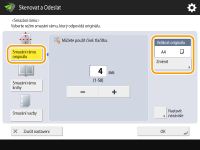 <Smazání rámu>.1 | Stiskněte <Smazání rámu originálu> a zkontrolujte <Velik. originálu>. ![]() Jestliže se velikost zobrazená v <Velik. originálu> liší od velikosti originálu, stiskněte <Změnit> a vyberte velikost. Skenovány mohou být pouze velikosti originálu, jež jsou zobrazeny na displeji dotykového panelu. |