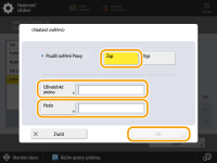 <Nastavit ověření>Stisknutím nastavíte autentizační informace při použití autentizační funkce proxy serveru. Stiskněte <Zap> na zobrazené obrazovce, zadejte uživatelské jméno a heslo pro proxy autentizaci a stiskněte <OK>.