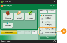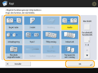 Antallet af indstillingsemner, der findes på skærmbilledet Grundlæggende funktioner, og placeringen, der skal vises, varierer afhængigt af funktioner. En genvejsknap vises ikke, hvis <Ikke tildelt> er angivet som en genvej. Grænsen for det antal genveje for <Tilvalg>, du kan registrere, er som følger. Kopi (grundlæggende): 5 Kopi (ekspres): 6 Scan og send: 2 Hvis du har ændret skærmbilledet Grundlæggende kopifunktioner til skærmbilledet Ekspreskopi (Hurtig ændring af indstillingerne (Skærmbilledet Ekspreskopi)), skal du vælge knappen i trin 3 og derefter trykke på <Registrér>. |