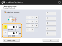 | Tryk på <X> eller <Y> for at indtaste længden på hver side med taltasterne. |