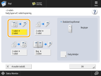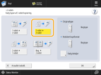For at angive originalretningen og ændre printningsretningen skal du trykke på <Vælg detaljer>. Vælg <Bogtype>, når originalens for- og bagside har samme top-bund-retning. Vælg <Kalendertype>, når originalens for- og bagside har modsatte top-bund-retninger. Du kan også indstille printets sideretning med <Bogtype> eller <Kalendertype>.