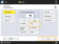 Hvis du har angivet <Auto XY-forhold>, skal du vælge papir i <Vælg papir>. Hvis du ikke har angivet papirformat, vil kopiforholdet automatisk blive indstillet efter det valgte papirformat i papirskuffe 1.