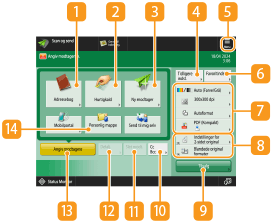 Når du trykker på <Scan og send> (<Hjem>-skærmen), vises skærmbilledet Grundlæggende scanningsfunktioner.