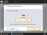 Indstil en værdi mellem 50 og 9999 ark som afbrydelsesintervallet for justeringssider, og tryk derefter på <OK>.