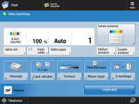 Valitse , joka näytetään <Päävalikko>-näytössä ja perustoimintojen näytössä, niin voit mukauttaa näyttöä, esimerkiksi järjestämällä painikkeet uudelleen tai luomalla pikavalintapainikkeen. Kosketusnäytön muokkaaminen![]() Voit muuttaa näyttöön liittyviä asetuksia, esim. mikä näyttö avautuu heti laitteen käynnistyttyä, ja näytetäänkö jäljellä olevaa paperin ja väriaineen määrää koskeva viesti. <Näyttöasetukset> Voit määrittää mikä ikkuna avautuu, kun tietty aika on kulunut ilman, että laitetta on käytetty. <Toiminta automaattisen nollauksen jälkeen.> |