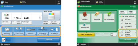 Voit vaihtaa asetuspainikkeet, jotka näkyvät perustoimintojen näytössä (kopiointi ja skannaus). Voit myös näyttää kullekin kirjautuneelle käyttäjälle mukautetut perustoimintojen näytöt.