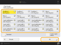 Jos näytössä on muu kuin paperikoon ja tyypin määritysikkunaJos näytössä on viesti, joka kehottaa säätämään paperiohjaimen, säädä paperiohjaimen leveys uudelleen ja valitse <OK>. |