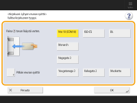 2. | Valitse kirjekuorten tyyppi. ![]() Kun haluat tallentaa mukautetun kirjekuorikoon, valitse <Muokattu> <Seuraava> ja määritä sivu valitsemalla <X> tai <Y> ja syöttämällä valitun sivun pituus numeropainikkeilla.Valitse <OK> ja jatka vaiheeseen 5. |