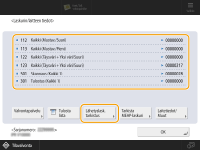 Jos haluat testata viestinnän etäseurantapalvelimen kanssa, paina <Valvontapalvelu> <Liikennöintitesti>. Kun tämä toiminto suoritetaan, koneen tiedot lähetetään säännöllisesti etäseurantapalvelimeen. Tämän toiminnon käyttö edellyttää, että viestintä koneen ja palvelun tarjoajan palvelimen välillä otetaan käyttöön.Voit tulostaa luettelon, jossa näkyvät kopiointiin, tulostukseen ja skannaukseen käytetyt sivumäärät. Tässä näytössä voit myös tarkistaa kunkin MEAP-sovelluksen laskuritiedot. Valitse vaiheen 2 näytössä <Tarkista MEAP-laskuri>. Jos valitset samassa näytössä <Laitetiedot/Muut> <Laitekokoonpano>, voit tarkistaa laitteeseen asennetut lisävarusteet sekä tallennuslaitteen tietojen salaukseen liittyvän turvasirun versiotiedot.Tietoja laskureista antaa käyttämäsi jälleenmyyjä tai huoltoedustaja. Jos haluat tietoja <Valvontapalvelu> -palvelusta, ota yhteyttä paikalliseen jälleenmyyjään tai huoltoedustajaan. |