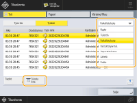 Jos tulostetun luettelon TULOS-sarakkeessa lukee NG, etsi ongelman syitä ja ratkaisuja tarkistamalla kolminumeroinen luku, jonka edellä on merkki #. Jos (Asetukset/Tallennus) <Hallinta-asetukset> <Laitehallinta> <Rajoita pääsyä toisen käyttäjän töihin> -asetuksena on <Kyllä>, muut kuin kirjautuneen käyttäjän työt näkyvät muodossa "***" eikä niitä voi käyttää. Jos kirjaudut sisään pääkäyttäjän oikeuksin, kaikkien käyttäjien työt näytetään. |