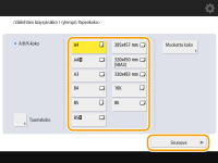 Jos haluat lisätietoja käytettävissä olevan paperin peruspainosta ja koosta, katso lisävarusteeseen Document Insertion Unit-R liittyvät kohteet kohdasta Käytettävissä oleva paperi. Jos asetat asiakirjan lisäysyksikköön esipainettua paperia käytettäväksi kansisivuna, aseta paperi tulostuspuoli ylöspäin. |