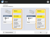 | | Kun teet vihkon, voit lisätä etukannen ja takakannen käyttäen erilaista paperia kuin pääasiakirjan paperi, kuten paksua paperi tai värillistä paperia. Voit määrittää kopioidaanko myös kanteen ja takakanteen. |