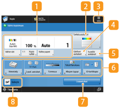 Vaihda kopion perustoimintonäyttö "pikakopion perustoimintonäytöksi" päästäksesi nopeammin kuhunkin asetusnimikkeeseen. Asetusten vaihtaminen nopeasti (Pikakopionäyttö) |