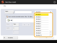 Als de LDAP-server al in de machine (De LDAP-server registreren) is opgeslagen, kunt u naar bestemmingen zoeken en ze in het adresboek opslaan. Druk op <Best./Door. instell.> <Registreer bestemmingen> <Nieuwe best. registreren> <Registreer vanaf LDAP-server> en zoek bestemmingen met <Zoek op condities> of <Zoeken op naam>.Als de gebruikersnaam en het wachtwoord juist zijn, maar het zoekresultaat leeg is, controleert u de tijdinstelling op de LDAP-server en op de machine. Als de tijdsinstellingen van de LDAP-server en de machine vijf minuten van elkaar verschillen, kan geen zoekopdracht worden uitgevoerd. Als meerdere bestemmingen worden weergegeven als zoekresultaten, kunt maximaal 256 daarvan tegelijkertijd opslaan. De informatie die verkrijgbaar is via de LDAP server, bestaat alleen uit namen en faxnummers/-adressen. Registreer desgewenst andere informatie van <Details/Bewerken>. U kunt niet tegelijkertijd naar bestemmingen op een LDAP-server zoeken via zowel het bedieningspaneel als de Remote UI (UI op afstand). Bij het zoeken naar bestemmingen op een LDAP-server vanaf het bedieningspaneel van de machine kunt u vier zoekvoorwaarden opgeven. Als u daarentegen naar bestemmingen op een LDAP-server zoekt via de Remote UI (UI op afstand), kunt u slechts één zoekvoorwaarde opgeven. Gebruik het toetsenbord op het scherm om de gebruikersnaam en het wachtwoord in te voeren. Voer de gebruikersnaam en het wachtwoord in van de machine die op de LDAP-server is geregistreerd. Als de authenticatiegegevens niet worden gebruikt, zoek dan met de velden gebruikersnaam en wachtwoord in de Remote UI (UI op afstand) blanco. Het opgegeven/registreren van bestemming vanuit de verzendgeschiedenisU kunt bestemmingen opgeven en bestemmingen voor het adresboek registreren vanuit de verzendgeschiedenis op het scherm <Statusmonitor>. Dit bespaart u de moeite om het adres direct in te voeren en u vermijdt het verzenden naar een onjuiste bestemming doordat u het verkeerde adres hebt ingevoerd. Bij het opgeven van een bestemming: <Statusmonitor> <Verzenden> <Opdrachtlog> selecteer de verzendbestemming <Opgeven als Verzendbestem.> <OK>U registreert als volgt een bestemming: <Statusmonitor> <Verzenden> <Opdrachtlog> selecteer de registratiebestemming <Bestemming opslaan> registreer de bestemming uit het registratiescherm voor elk bestemmingstype. |