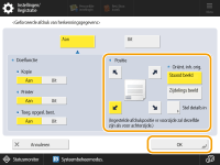 Druk op <Aan> en selecteer de functies waarmee gebruikersgegevens zonder meer worden afgedrukt.