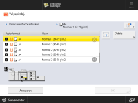 Informatie over het basisgewicht en de papierformaten die u kunt gebruiken met de kunt u vinden door items voor de "Multi-drawer Paper Deck-E" te zoeken in Beschikbaar papier. |