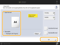 Het scherm voor het opgeven van het papierformaat en -type wordt weergegeven wanneer het papier helemaal is ingevoerd.