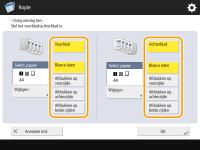 Om een achterblad toe te voegen, drukt u op <Achterblad>. Bij het kopiëren op het achterblad kunt u aangeven waar (op de voorzijde, de achterzijde of beide zijden) moet worden gekopieerd.