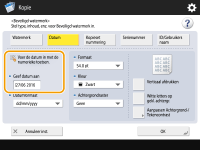 2 | Stel de data in die u wilt insluiten. ![]() De data die op de machine zijn ingesteld, worden bij <Geef datum aan> weergegeven. Om andere data in te sluiten, voert u ze in met de numerieke toetsen. |