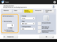 2 | Voer het eerste referentienummer in. ![]() Voer met de numerieke toetsen het invoerveld van <Start nummering> in. |