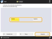 Afhankelijk van de afwerkingsfuncties is installatie van optionele apparaten nodig. Optionele apparatuur Afhankelijk van het papiertype kunt u geen afwerkingsfuncties gebruiken. Technische gegevens hardware Als u een origineel op de glasplaat legtAls u op <Opties> <Opdrachtsamenstelling> op het scherm met basisfuncties voor kopiëren drukt, kunt u de functie Sorteren/Groeperen gebruiken, zelfs als het origineel op de glasplaat ligt.Voeg een opdrachtscheiding tussen de pagina's in tijdens de uitvoer van een groep.Als u <Groeperen (Zelfde pag.)> selecteert, kunt u een opdrachtscheiding tussen elke groep leggen. Voor meer informatie raadpleegt u <Opdrachtscheiding tussen groepen>. <Opdrachtscheiding tussen groepen> Bij het configureren van instellingen in <Toegang opgeslagen bestanden>De finishingfunctie kan alleen worden gebruikt wanneer u een PDF/XPS-bestand of een bestand dat in de postvak is opgeslagen, afdrukt. |