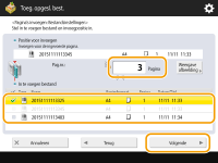 2 | Geef het bestand dat u wilt invoegen, en de positie waar u het wilt invoegen, op en druk op <Volgende>. ![]() Voer met de numerieke toetsen het paginanummer in waar u het bestand wilt invoegen. |