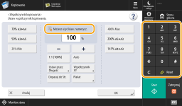 Podczas wyświetlania klawiszy numerycznychGdy jest wyświetlana opcja < Możesz użyć klaw. numerycz.>, wartości liczbowe można wprowadzać za pomocą klawiszy numerycznych.Przykład: Ekran ustawień <Współczynnik kopiowania> ![]() Gdy jest wyświetlana opcja < Wprow.używ. klaw. numer.> można używać tylko klawiszy numerycznych do wprowadzania cyfr.Wprowadzanie znaków z klawiatury USBAby wprowadzić znaki można skorzystać z klawiatury USB po podłączeniu jej do portu USB (Przednia strona). Należy zapamiętać poniższe wskazówki podczas wprowadzania znaków z klawiatury USB. Dla <Użyj Sterownika MEAP dla Urządzenia USB> w <Ustawienia USB> ustawić <Wyłącz>. <Użyj Sterownika MEAP dla Urządzenia USB> Wykorzystując klawiaturę USB, można wprowadzać jedynie znaki ASCII. Klawisze które nie są wyświetlane na ekranie dotykowym (na przykład Delete, End, Tab, Esc i klawisze funkcyjne) nie będą działać w czasie korzystania z klawiatury. Dźwięk wprowadzania z poziomu klawiatury USB jest emitowany w oparciu o ustawienia <Sygnał Wprowadzania> oraz <Syg. niepoprawnego wprow.> na ekranie ustawień dźwiękowych. Ustawianie dźwięków |