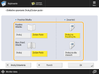 2 | Wybierz ustawienia kopiowania w <Przednia wkładka> oraz <Z powrotem wklejka> naciśnij <OK>.Naciśnij <Zostaw Puste>, jeżeli nie chcesz kopiować na wyklejce. Jeżeli papier na wyklejki jest podawany z „Document Insertion Unit-R”, wybierz <Zostaw Puste>. Aby ustawić papier na wklejki, naciśnij <Zmień> dla <Wybierz Papier> wybierz źródło papieru naciśnij <OK>. |
