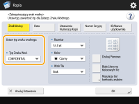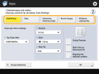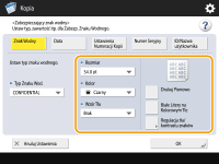 ![]() | Podczas kopiowania dokumentów zawierających poufne informacje, można wkomponować w nie widoczny tekst, taki jak ŚCIŚLE TAJNE lub POUFNE aby ostrzec nieautoryzowanych użytkowników, aby nie kopiowali tychże dokumentów. Podczas kopiowania dokumentu, który został już skopiowany, wkomponowany tekst pojawi się na całej stronie, co uniemożliwi wykonanie kopii z kopii. Opcje systemu W zależności od używanego urządzenia funkcja ta jest dostępna domyślnie. |