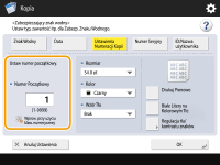 2 | Wprowadź początkowy numer referencyjny. ![]() Wprowadź go w polu <Numer Początkowy> za pomocą klawiszy numerycznych. |