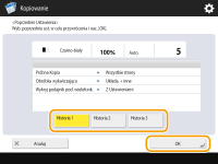 ![]() | Można przywołać ostatnio wykorzystywane ustawienia kopiowania. Szczegóły dla przywołanych ustawień można zmienić przed rozpoczęciem kopiowania. |
