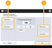 | Podczas skanowania istnieje możliwość powiększenia albo zmniejszenia oryginałów o standardowym rozmiarze do innego standardowego rozmiaru. Powiększanie lub zmniejszanie do standardowych formatów papieru |