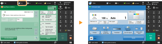 Pode criar um botão de atalho para as funções no ecrã <Início>. Utilize este botão para aceder a uma função diferente sem voltar ao ecrã <Início>. Para criar um atalho, inicie sessão com privilégios de administrador.