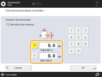 Especifique o comprimento do lado <X> e do lado <Y>. Carregue em <X> ou <Y> para introduzir o comprimento de cada lado com as teclas numéricas.