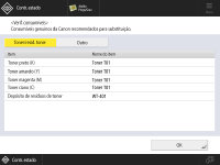 (Controlo de Estado) é apresentado o ecrã Controlo de Estado, que permite verificar o nível de toner ou outras indicações de estado.