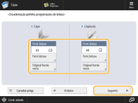 2 | Selecione as programações de cópia em <Guarda anterior> e <Guarda posterior> carregue em <OK>.Carregue em <Deixar em branco> se não quiser copiar na guarda. Se puxar papel para a guarda a partir do "Document Insertion Unit-R”, selecione <Deixar em branco>. Para especificar papel para a guarda, carregue em <Alterar> para <Selecionar papel> selecione a origem do papel carregue em <OK>. |