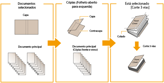 ![]() | Este modo permite fazer cópias de originais de uma face ou frente e verso, de maneira a colá-las para criar um folheto. |