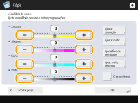 Carregue em <-> ou <+> para cada cor para ajustar o equilíbrio de cores.