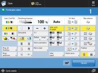 Apresenta os botões de <Opções> utilizados mais frequentemente. O estado da programação é apresentado nos botões. É possível alterar os botões atualmente apresentados para outros botões de programação de funções, utilizando o ícone em