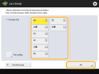 Quando estiver definido um formato de leitura menor que o tamanho mínimo que pode ser digitalizado com o alimentador, a digitalização não pode ser executada com o alimentador. Para obter informações sobre os formatos de documentos que podem ser lidos com o alimentador, consulte