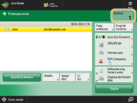 Ecrã de funções básicas de leituraEspecificar destinos do livro de endereços