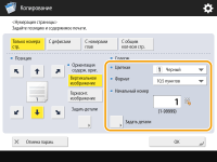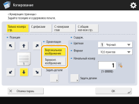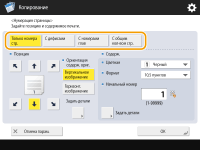 Номера и символы не печатаются на обложках (Добавление передней и задней обложек) и вставочных листах (Вставка листов и титульных страниц глав (Вставочные листы)). Номера комплектов копий печатаются на всех скопированных страницах. Номера комплектов копий могут печататься вместе с датами и текстом. <Парам. вариантов нумерации компл. копий> Текст для <Нумерация страниц> и <Водяной знак> также можно выбрать из текста, зарегистрированного в <Регистр. симв. для нумерации стр./водяного знака>. Если для печати в одной и той же позиции установлены два любых режима из режимов <Нумерация страниц>, <Водяной знак>, <Печать даты> или <Нумерация комп. копий>, то при нажатии клавиши (Пуск) отображается сообщение с запросом подтверждения.Если параметр <С номерами глав> выбран в сочетании с режимом <Вставка листов>, номера глав учитываются в следующих местах: после вставки каждой титульной страницы главы; после каждой вставки листа. Если для <Парам. вариантов нумерации компл. копий> установлено <Вкл.>, параметры, которые вы можете указать, изменяются следующим образом. <Парам. вариантов нумерации компл. копий> Больше нельзя выбирать <Вся поверхность> и <Номера в 5 местах> для позиций печати в режиме «Нумерация комплектов копий». Размер чисел для режима «Нумерация комплектов копий» становится следующим: <10,5 пунктов>, <12,0 пунктов> и <14,0 пунктов>. |