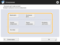 Можно выбрать несколько типов качества изображения одновременно. Однако нельзя одновременно выбрать <Яркие цвета> и <Пастельные цвета>, а также <Светлое изображение>, <Темное изображение> и <Воспроизв. светл.участ.>.