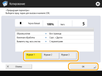 | | Можно вызвать параметры копирования, которые использовались в предыдущий раз. Перед копированием вызываемые параметры можно изменить. |