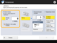 Чтобы вставить два листа или более, нажмите кнопку <К-во листов для вставки> и с помощью цифровых клавиш введите необходимое количество листов.