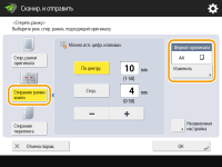 Если размер, отображаемый для параметра <Формат оригин.>, отличается от заданного формата книги, нажмите кнопку <Изменить>, чтобы выбрать размер. Сканировать можно только оригиналы форматов, указанных на сенсорном дисплее.