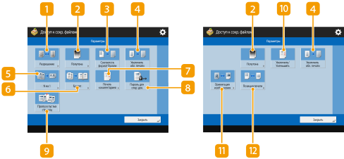 Нажмите <Доступ к сохр. файлам> на экране <Главный> и выберите почтовый ящик, чтобы печатать файлы и отобразить указанный ниже экран настройки.
