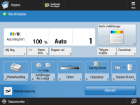 Tryck på som visas på skärmen <Hem> och skärmbilden med grundläggande funktioner för att anpassa den genom att t.ex. flytta på knappar eller skapa genvägsknappar. Anpassa pekskärmen![]() Du kan ändra inställningarna för skärmbildsvisningen, som t.ex. vilken skärmbild som visas när du slår på maskinen och om meddelandet för återstående papper och toner ska visas. <Visa inställningar> Du kan ställa in vilken skärmbild som ska visas när en viss tid har passerat utan åtgärd. <Funktion efter autoåterställning> |