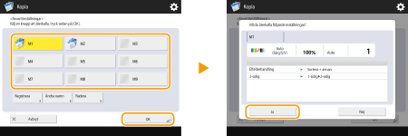 Tryck på <Kopiera> och ange de inställningar som du vill registrera.